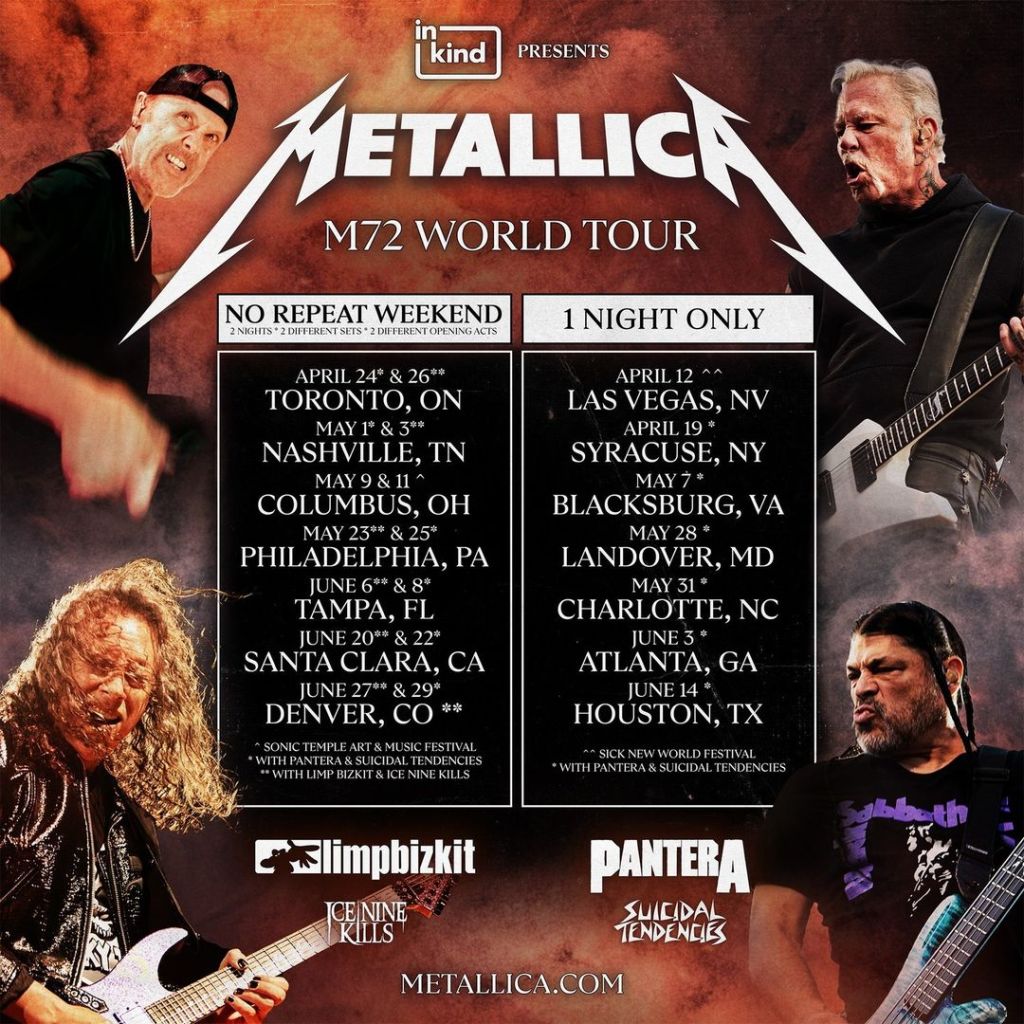 Metallica’s M72 World Tour has been extended into 2025 with two nights at Lincoln Financial Field in Philadelphia.