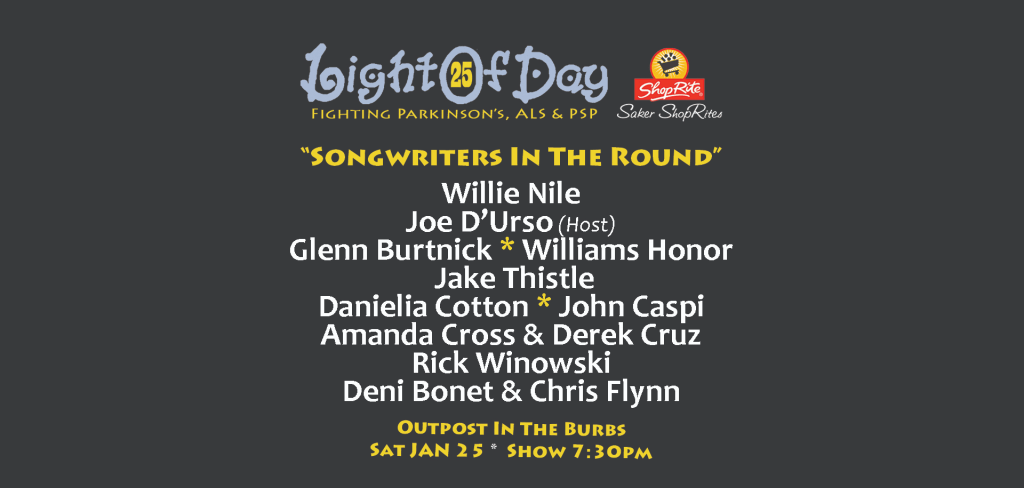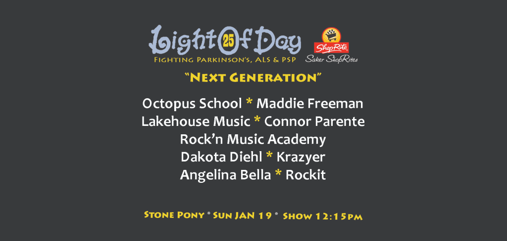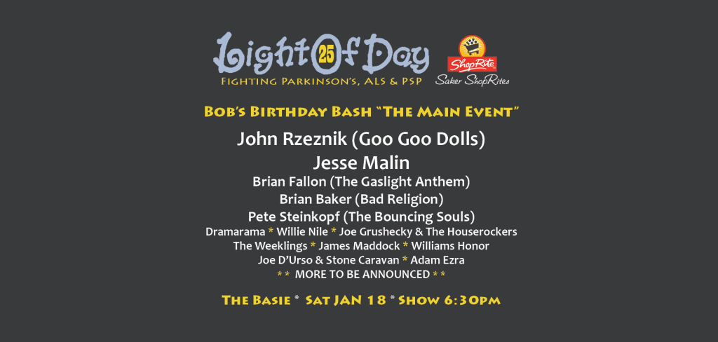 All shows and tickets sold benefit Light of Day’s journey to “battle to defeat Parkinson’s disease and its related illnesses ALS (Amyotrophic Lateral Sclerosis) and PSP (Progressive Supranuclear Palsy) within our lifetime.” Read more about their cause here.