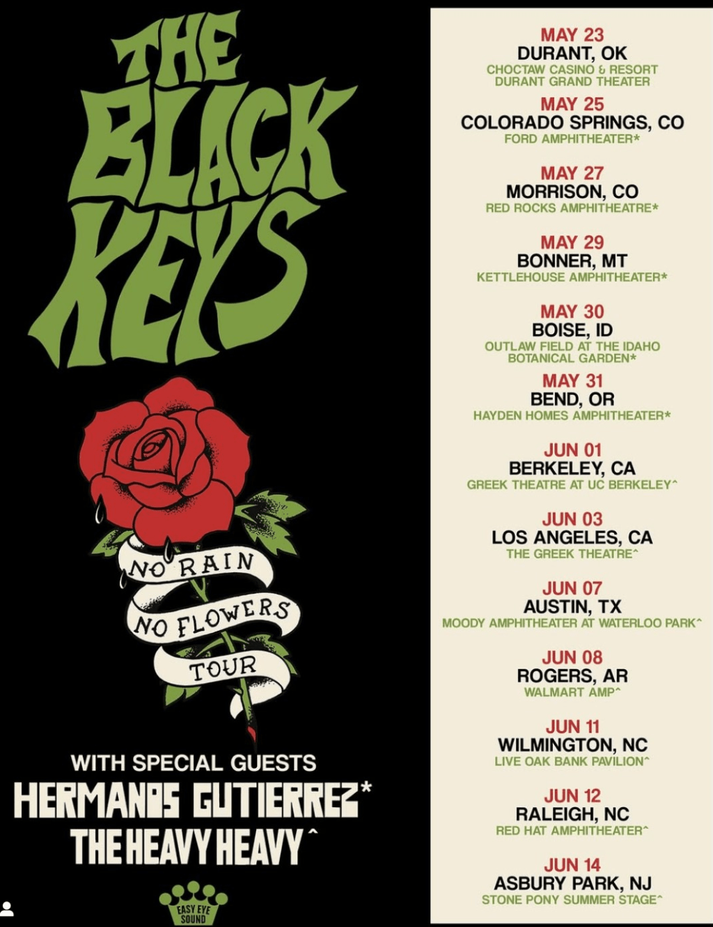 Full No Rain No Flowers tour dates: