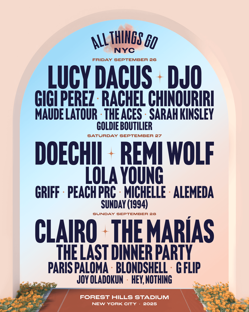This year’s festival will be headlined by Doechii, Clairo, Lucy Dacos, Djo, Remi Wolf, and The Marias. Other notable acts include Gigi Perez, The Last Dinner Party, The Aces, Joy Oladokun, Hey, Nothing, Blondshell, and Goldie Boutilier.