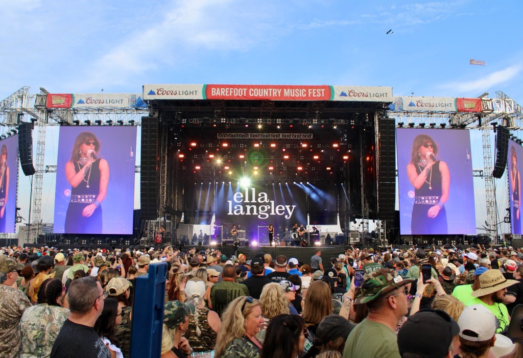 Ella Langley continued the day, opening with her biggest hit, “weren’t for the wind.” Her band was very tight, but even when she shooed them away to play a few acoustic tracks, she still rocked the stage.