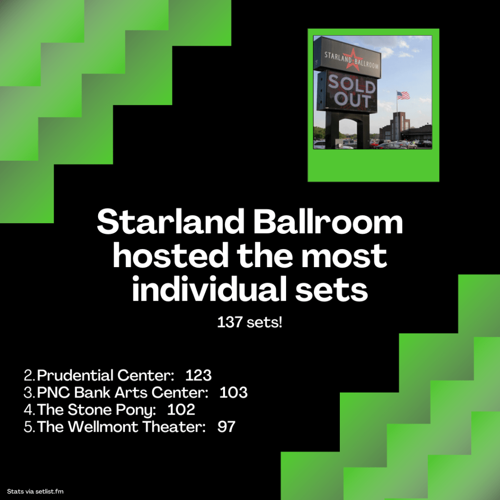 According to the setlist.fm database, there were nearly 4,000 individual sets in New Jersey this year. By the end of December, this will be an increase of databased shows from 2024.