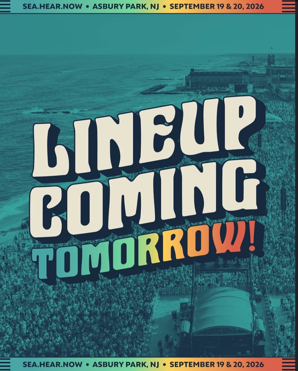 Sea.Hear.Now will announce its much anticipated lineup on Tuesday, Mar. 24, the festival announced Monday. Tickets will be made available for Asbury Park residents on Wednesday, and later in the week for everyone else.