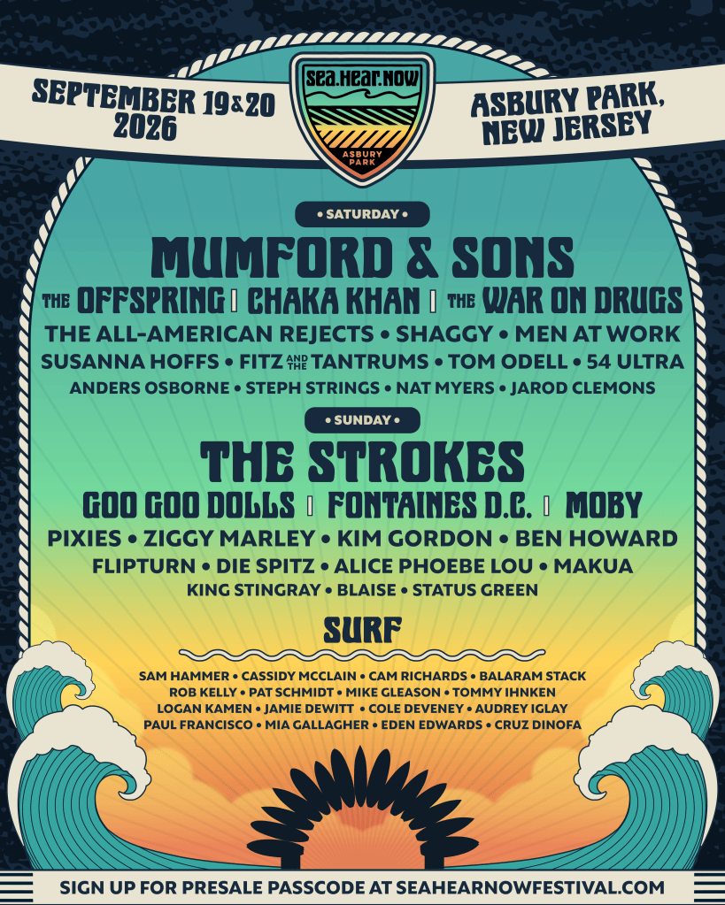 Sea.Hear.Now will return to Asbury Park, N.J. for an eighth time on Sept. 19 and 20. Today, the festival released the lineup headlined by Mumford & Sons and The Strokes.